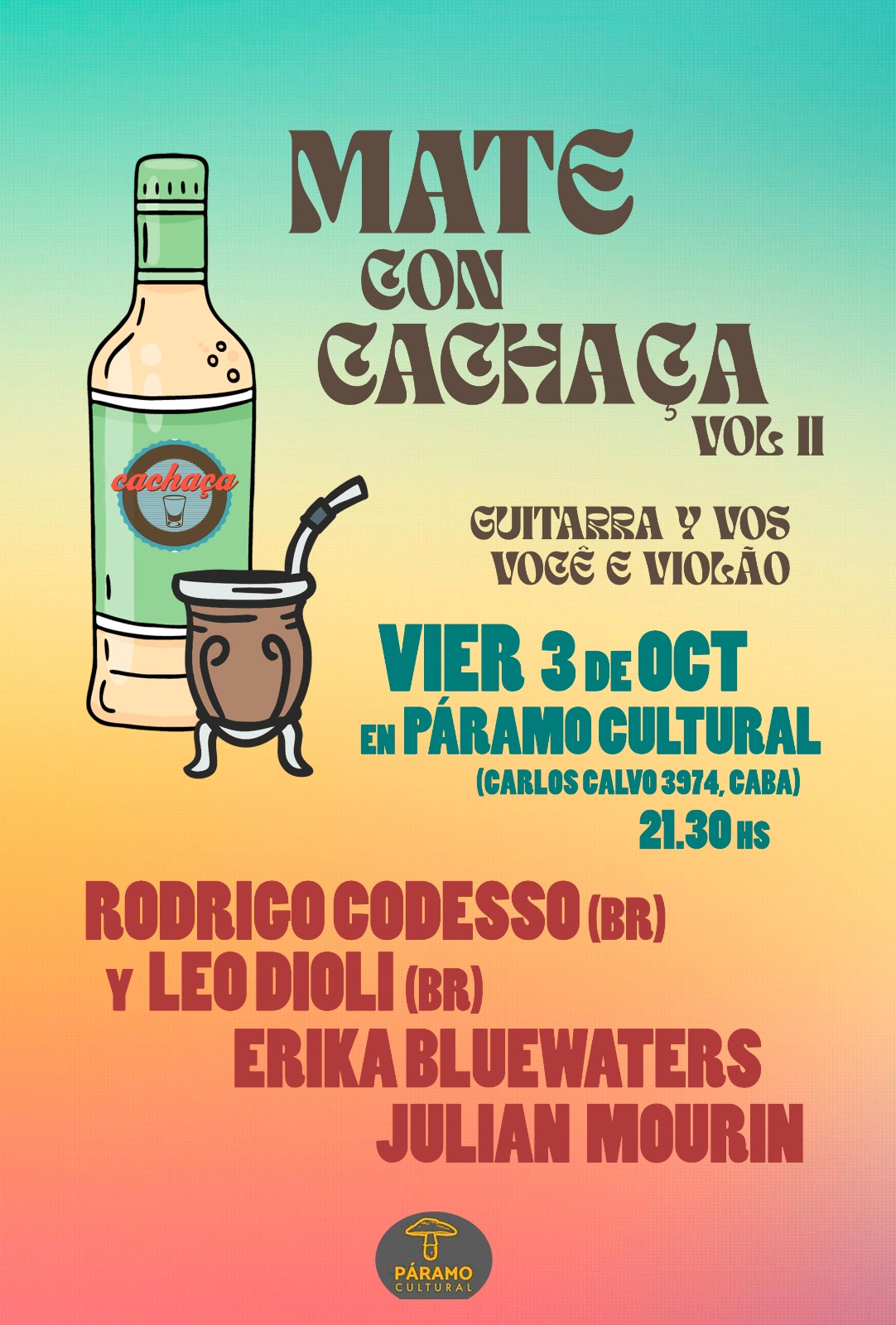 2da edición del ciclo Mate con cachaça! Un ciclo para celebrar la república del portuñol. Guitarra y você, milonga y samba, joya tudu bom. Viernes 3 de octubre 21.30h Páramo Cultural Desde Cabo Frío,